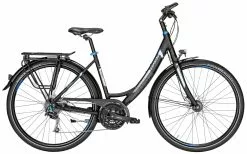 Alu-Rahmen, Suntour XCE-28 Federgabel, 21-Gang Tourney Schaltung mit EZ-Fire Schalthebeln, STYX Tretlager, Shimano Nabendynamo, DBM-2 Hohlkammerfelgen, Tektro V-Bremsen, STYX Sattelstütze, Downhill-Lenker und Vorbau, 30 Lux LED-Lampe, Standrücklicht, Hinterbauständer, Schutzbleche, integrierter Gepäckträger mit Monkeyload Stecksystem