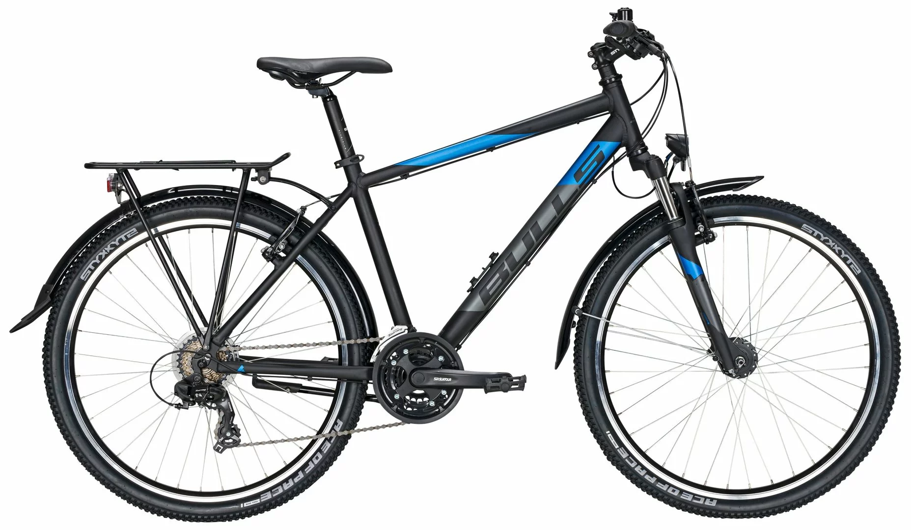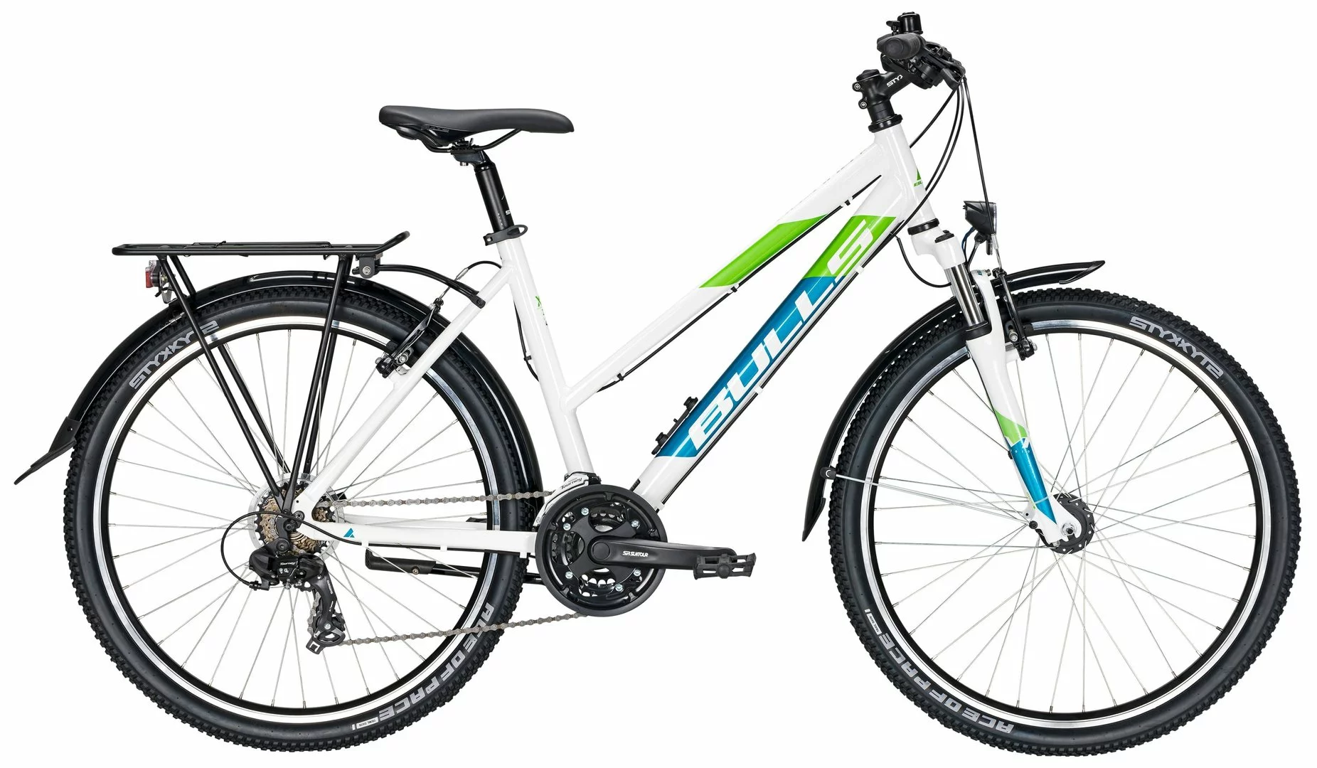 6061 Alu-Rahmen, Suntour M-3010-P Federgabel, 21-Gang Tourney Schaltwerk und Umwerfer, Altus EZ-Fire Schalthebel, STYX Kurbeln, Shimano Nabendynamo, Tektro V-Bremsen, STYX Sattelstütze, A-Head Vorbau, 30 Lux LED-Lampe, Standrücklicht, Aluminium-Rohrgepäckträger