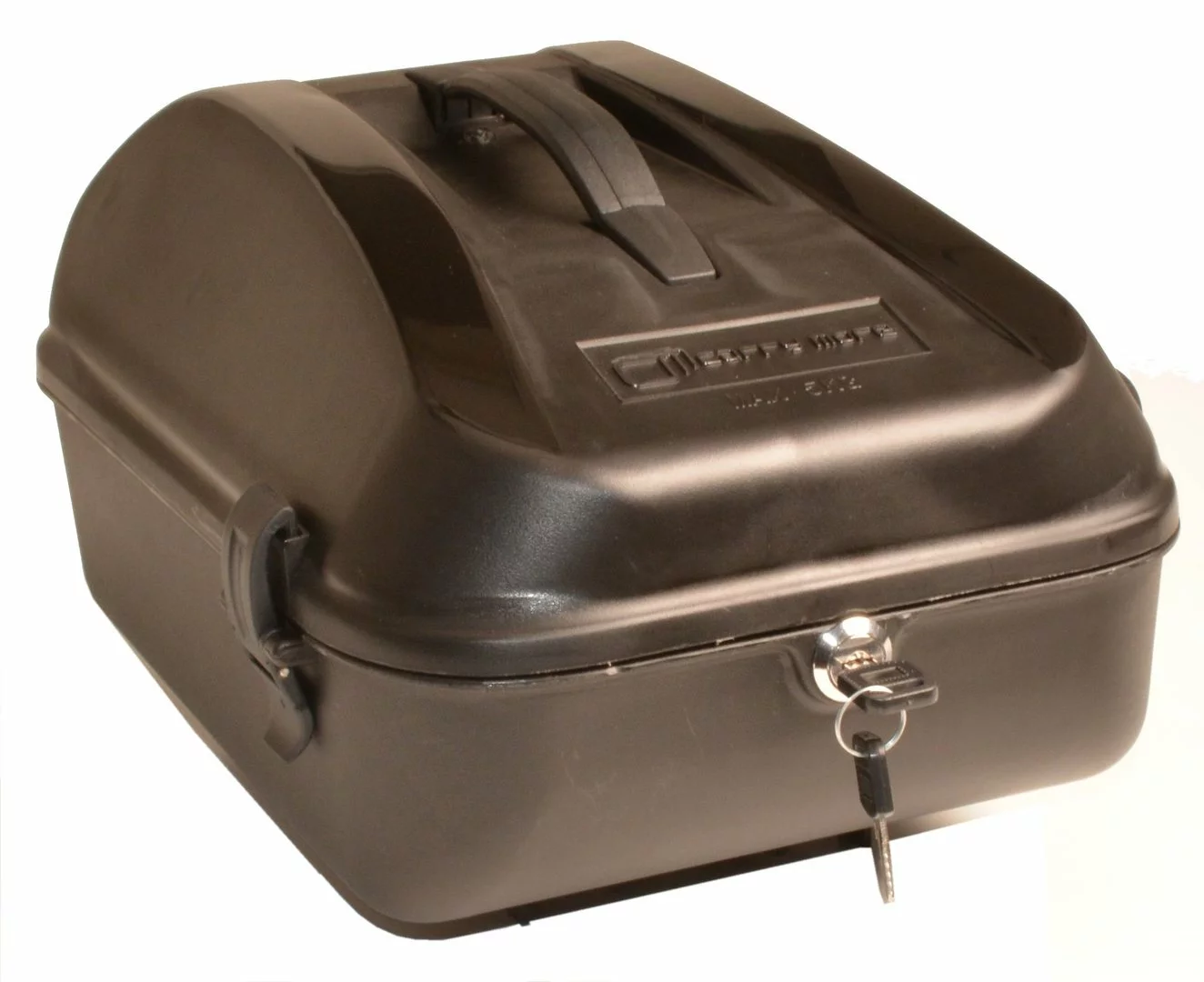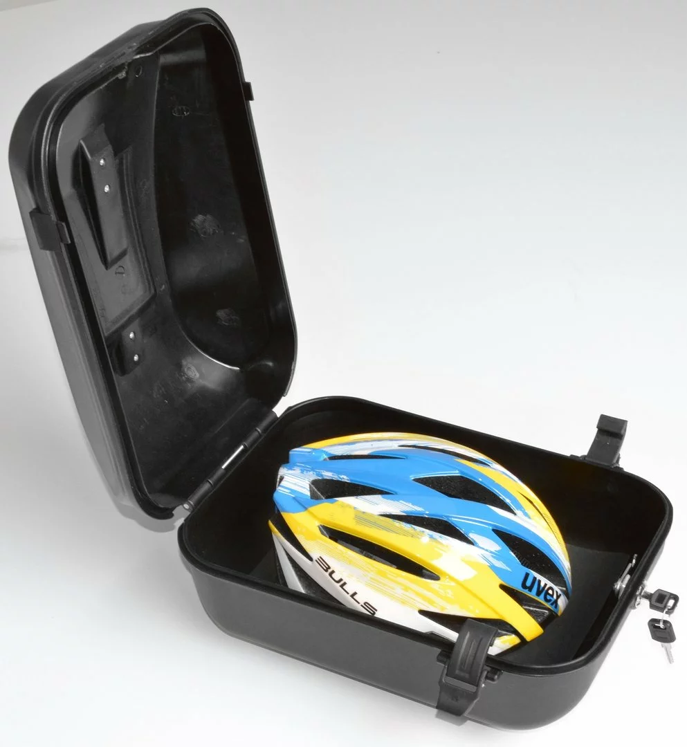 Abschließbare Fahrrad-Gepäckbox inkl. Schnellverschlussadapter. Großes Packvolumen (12 Liter) passend für z.B. Fahrradhelm. Wasserdicht und mit einem ergonomischen Tragegriff.