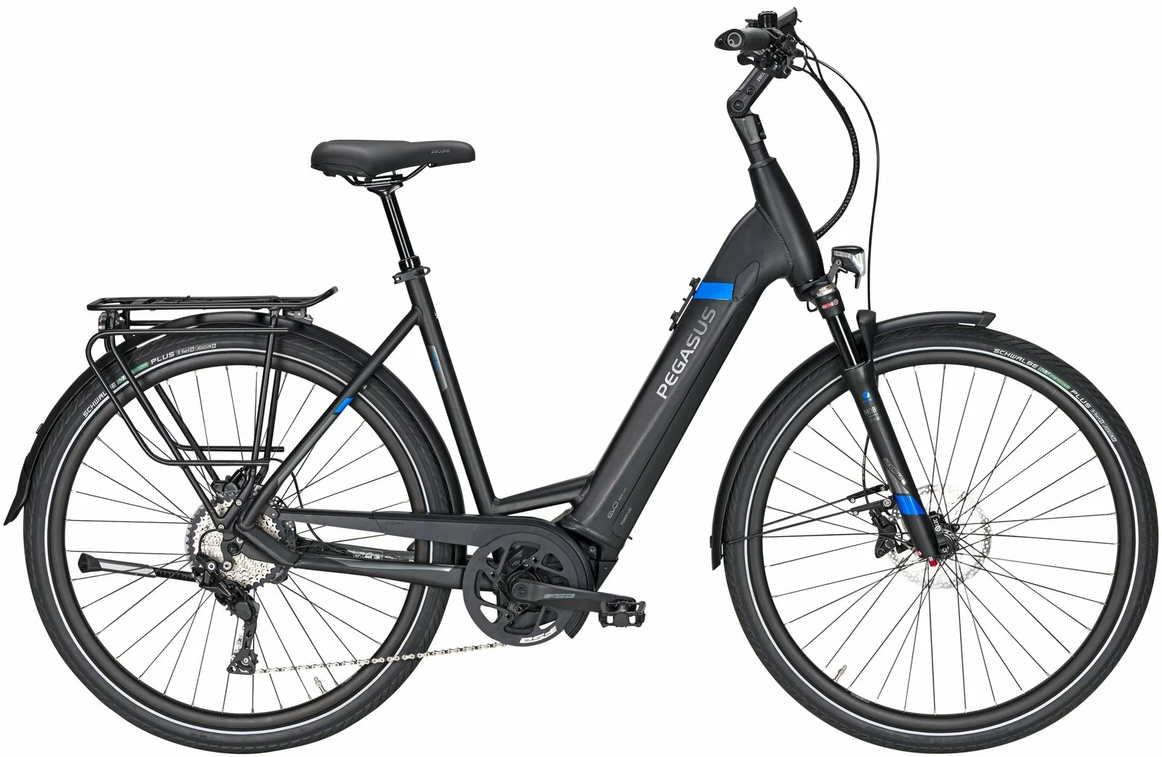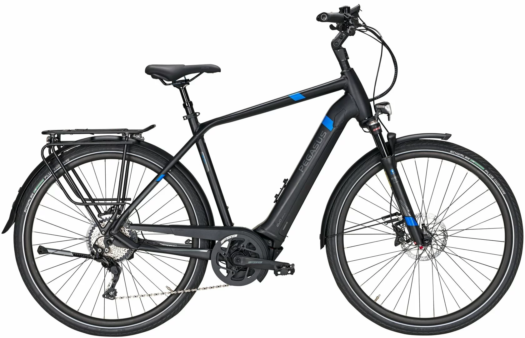 Mit satten 180 Kilo zulässigem Gesamtgewicht ist das Strong Evo 10 perfekt zugeschnitten auf stattliche Fahrerinnen und Fahrer sowie Tourenbiker, die mit viel Gepäck unterwegs sind. Eine gute Wahl ist in beiden Fällen der schubstarke Bosch Performance Line CX, der mit hohem Drehmoment das Anfahren ebenso erleichtert wie die Bewältigung steiler Anstiege und dabei auch auf flüssige Trittfrequenzen sensibel reagiert. Mit drei Varianten von 400 bis 625 Wattstunden lässt sich der in den Rahmen integrierte Akku punktgenau auf die Nutzungsintensität abstimmen. Eine sensibel ansprechende Luftfedergabel sorgt für hohen Komfort, und beim Auf- wie Absteigen bewährt sich die absenkbare Sattelstütze. Mit standfesten Shimano-Scheibenbremsen und 10-Gang-Kettenschaltung sind funktionelle Komponenten an Bord, so auch die superhelle Lichtanlage und ein solider Systemgepäckträger. Angeboten wird das Strong Evo 10 mit Herren- wie mit Wave-Rahmen.