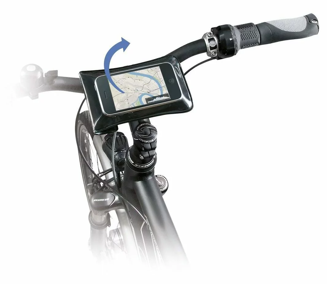 Diese Fahrrad Halterung ist der perfekte Witterungsschutz für Smartphones jetzt in zwei Größen. Ideal zur Navigation – immer im Blick und direkt erreichbar. Das große Klarsichtfenster lässt die Bedienung durch die Folie zu. Schneller Wechsel von Hoch- auf Querformat mit integrierter Drehkupplung. Am Rad wird die Phonebag schnell und sicher mit dem neuen KLICKfix Quad Adapter fixiert. Mit Edelstahlband auf beliebigen Durchmessern von Lenker, Vorbau oder Oberrohr montierbar. Zum Abnehmen genügt die Betätigung einer der beiden großen Auslösetasten.