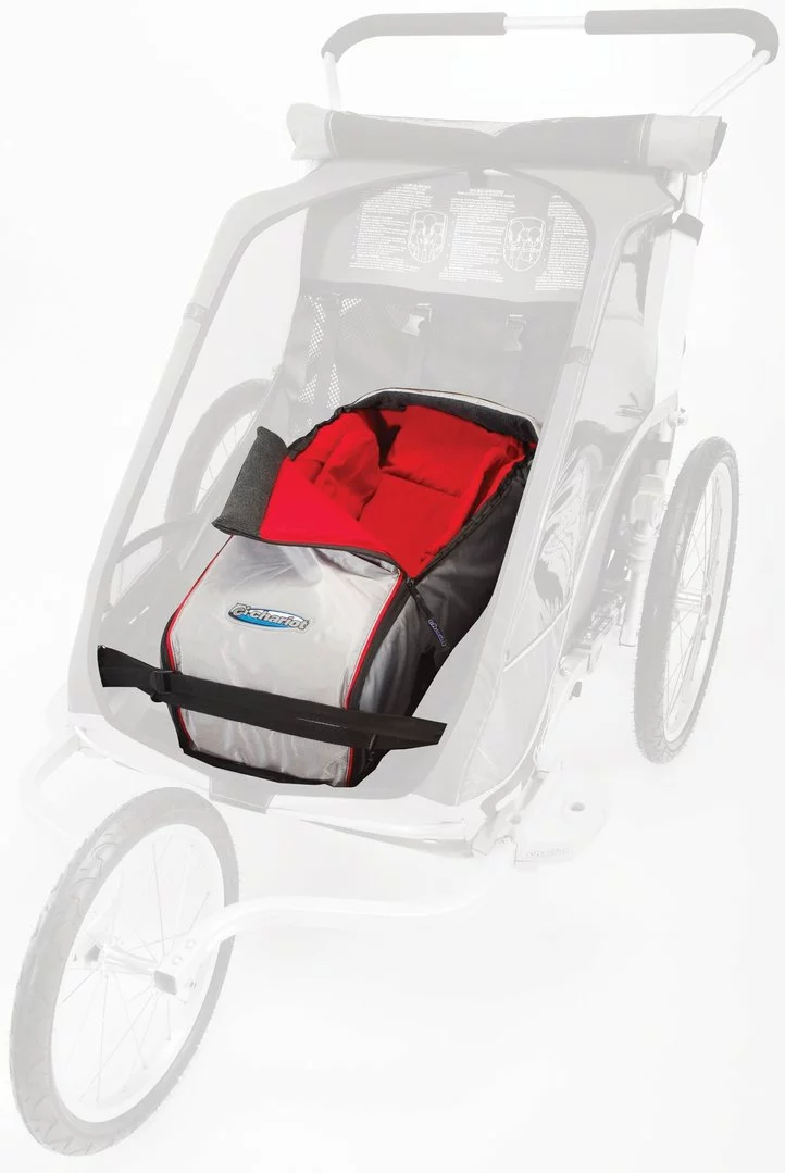 Die Thule Chariot Babytragetasche ermöglicht es auch ein Neugeborenes früh an das Fahren in einem Kinderbuggy zu gewöhnen. Die Babytragetasche ist im Prinzip aufgebaut wie ein Kinderwagenkorb, welcher aber speziell auf Kinderanhänger (1 und 2 Sitzer) mit Buggyfunktion abgestimmt wurde. Dank der gut gepolsterten Seiten und eines integrierten Schlafsacks liegt das Baby während des Spaziergangs besonders komfortabel. Trageriemen an den Seiten erlauben es die Tasche samt Baby außerhalb weiter zu tragen, ohne das Kind aufwecken zu müssen.