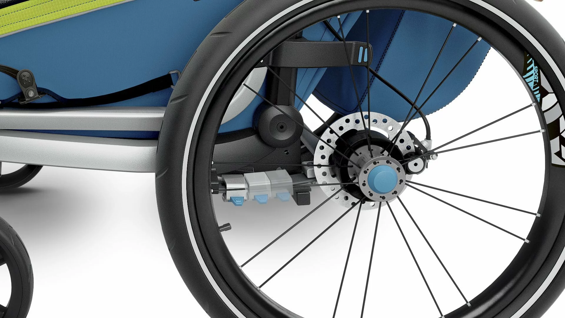 - Handbetätigte Scheibenbremse – für eine verbesserte Kontrolle bei starkem Gefälle und beim Laufen